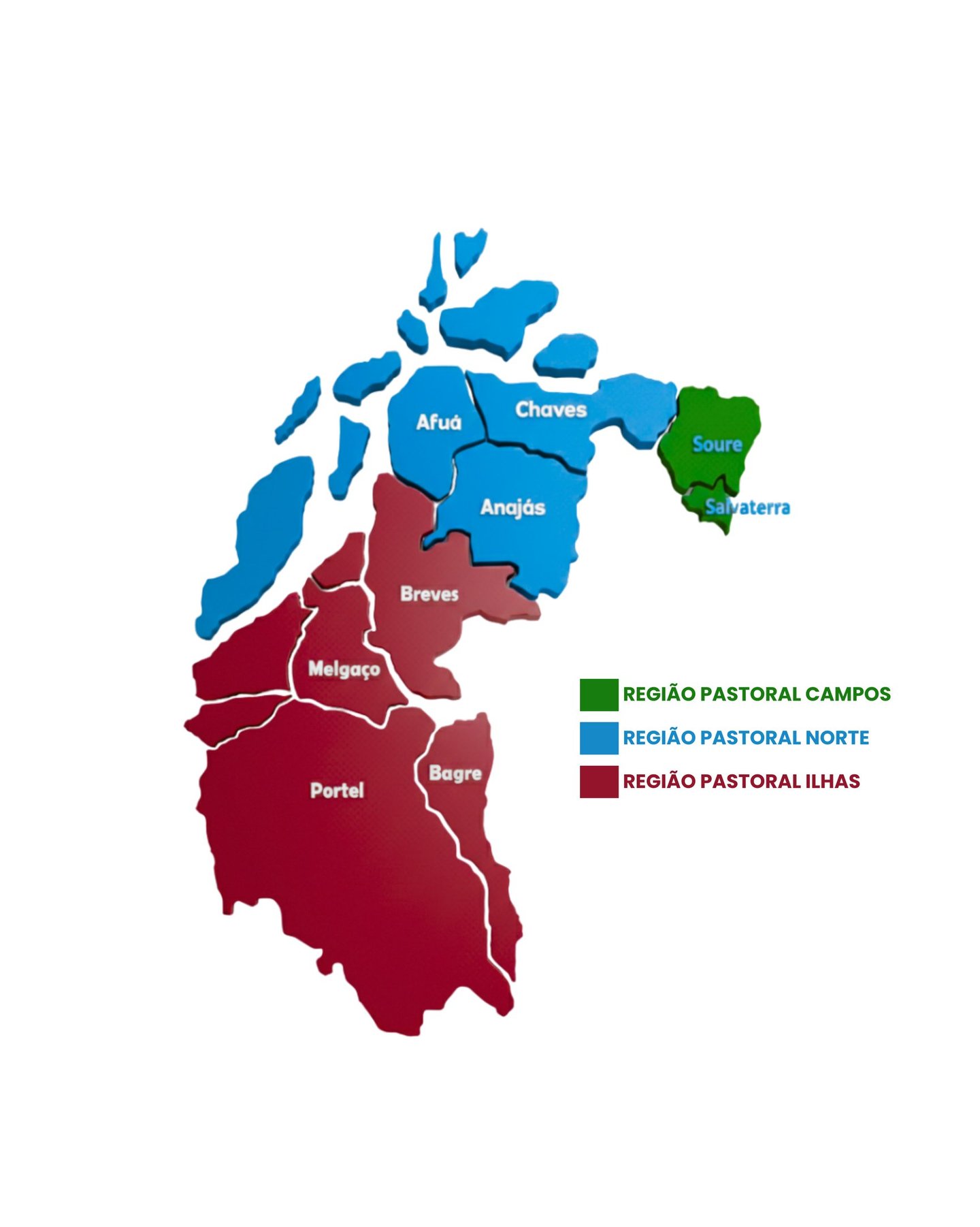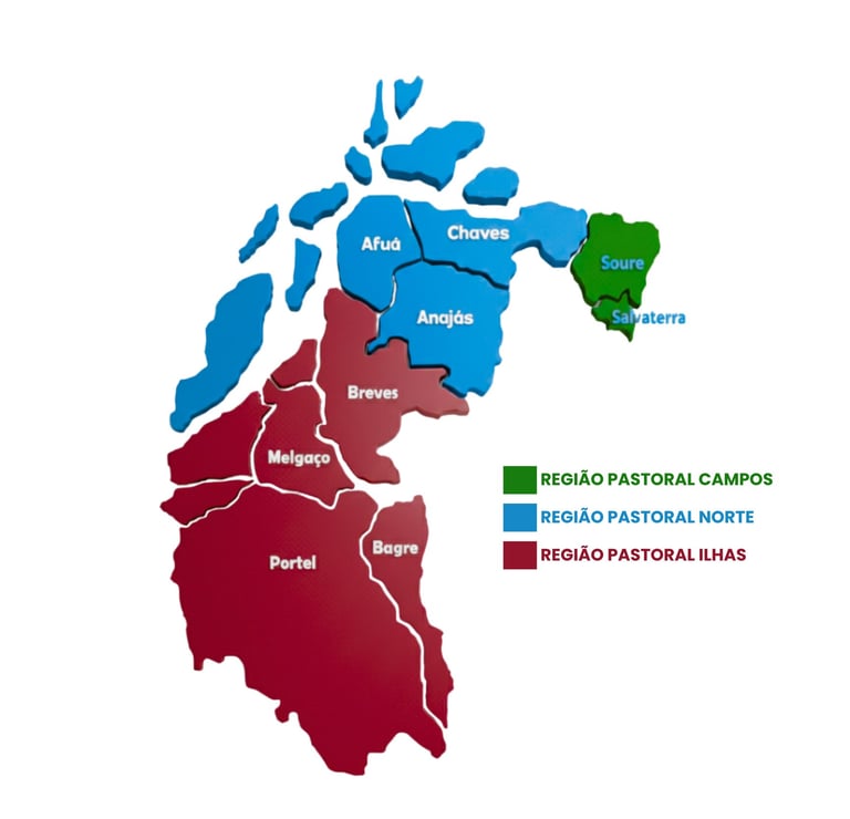 Atualmente compreende 9 municípios: Afuá, Anajás, Bagre, Breves, Chaves, Melgaço, Portel, Salvaterra e Soure, totalizando 10 paróquias. A sé episcopal onde se encontra a Catedral Nossa Senhora da Consolação e a Cúria Prelatícia está localizada em Soure (PA).